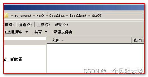 首先我们去找到我们 Tomcat 的目录下的 work\Catalina\localhost 目录。当我们发布 day09 工程。并启动 Tomcat