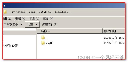 服务器后。我们发现 在 work\Catalina\localhost 目录下多出来一个 day09 目录。