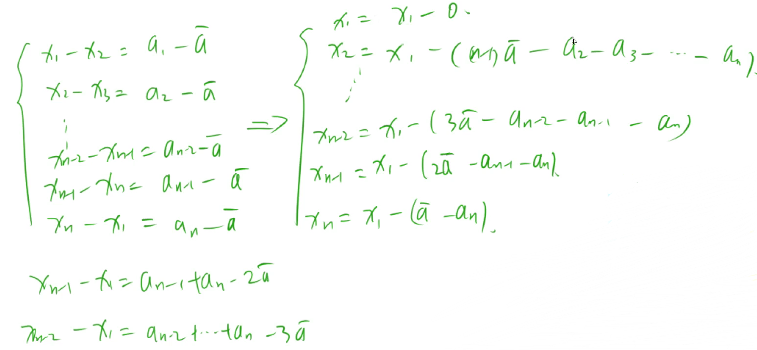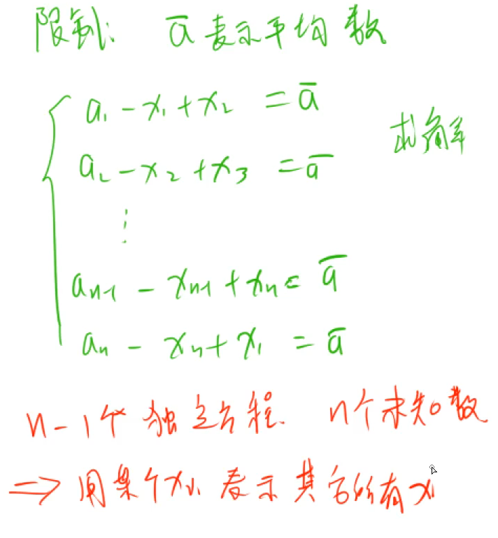 接下来 n 行,每行一个整数 a[i],表示第 i 个小朋友初始得到的糖果的颗数。