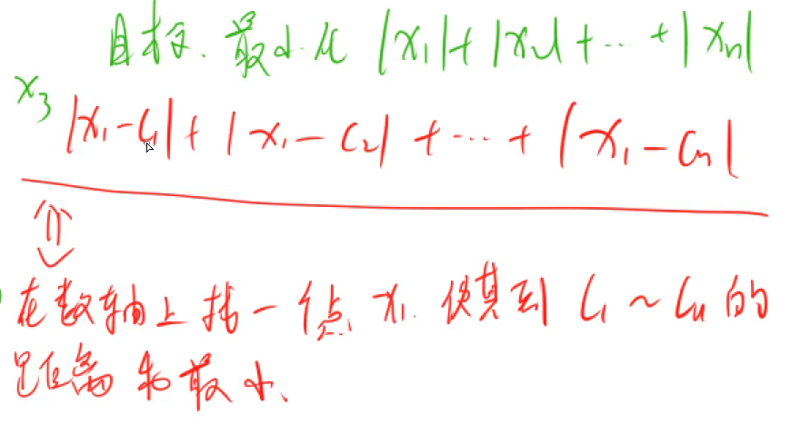 中位数有非常优秀的性质,比如说在这道题目中,每一个点到中位数的距离,都是满足全局的最有性,而不是局部最优性。