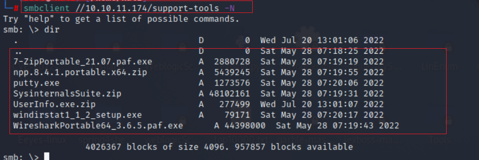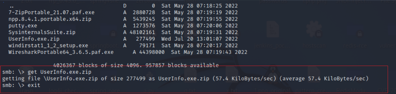 使用“dir”命令,我们可以获得存储在“support-tools”上的文件的目录列表。然后下载所有文件,去在本地进行分析。