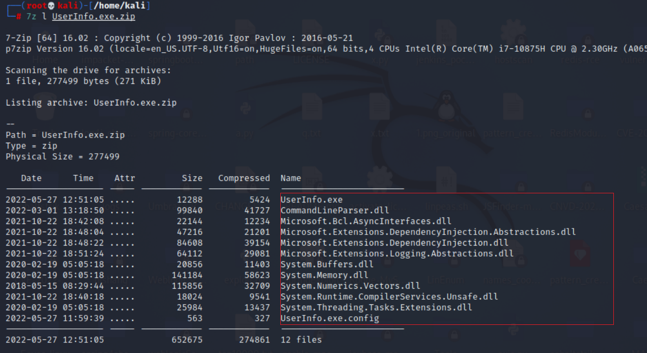“UserInfo.exe.zip”。检查文件的哈希值,发现这个“UserInfo.exe.zip”文件包含一个“UserInfo.exe”。