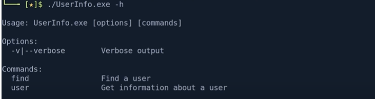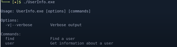 使用有效名称,它会打印出可能需要的有关用户的信息: