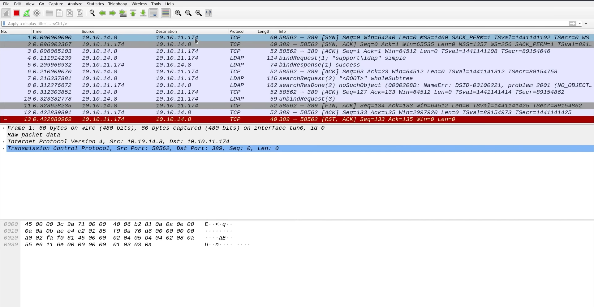 前面提到服务器,打开 Wireshark 并再次运行它。发现它正在寻找support.htb: