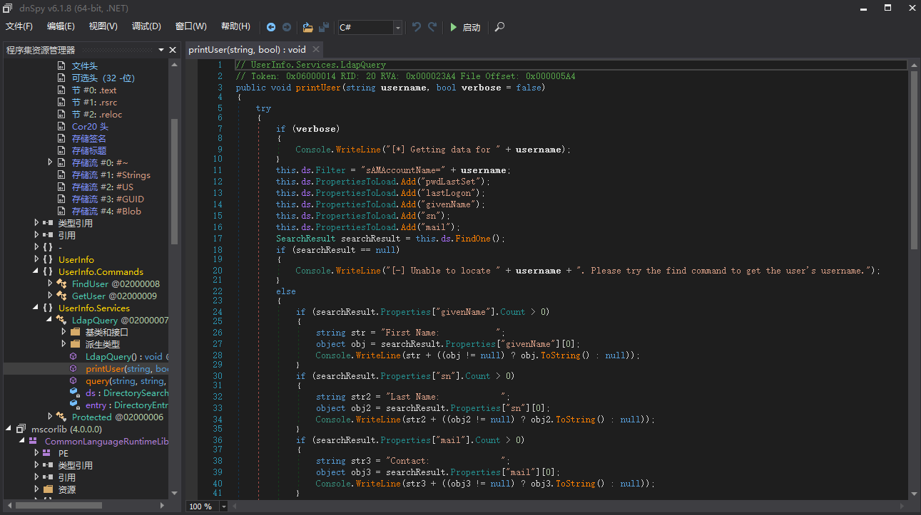 LdapQuery似乎是一个很好的起点。有两个函数printUser和query,它们可能与这两个命令匹配。