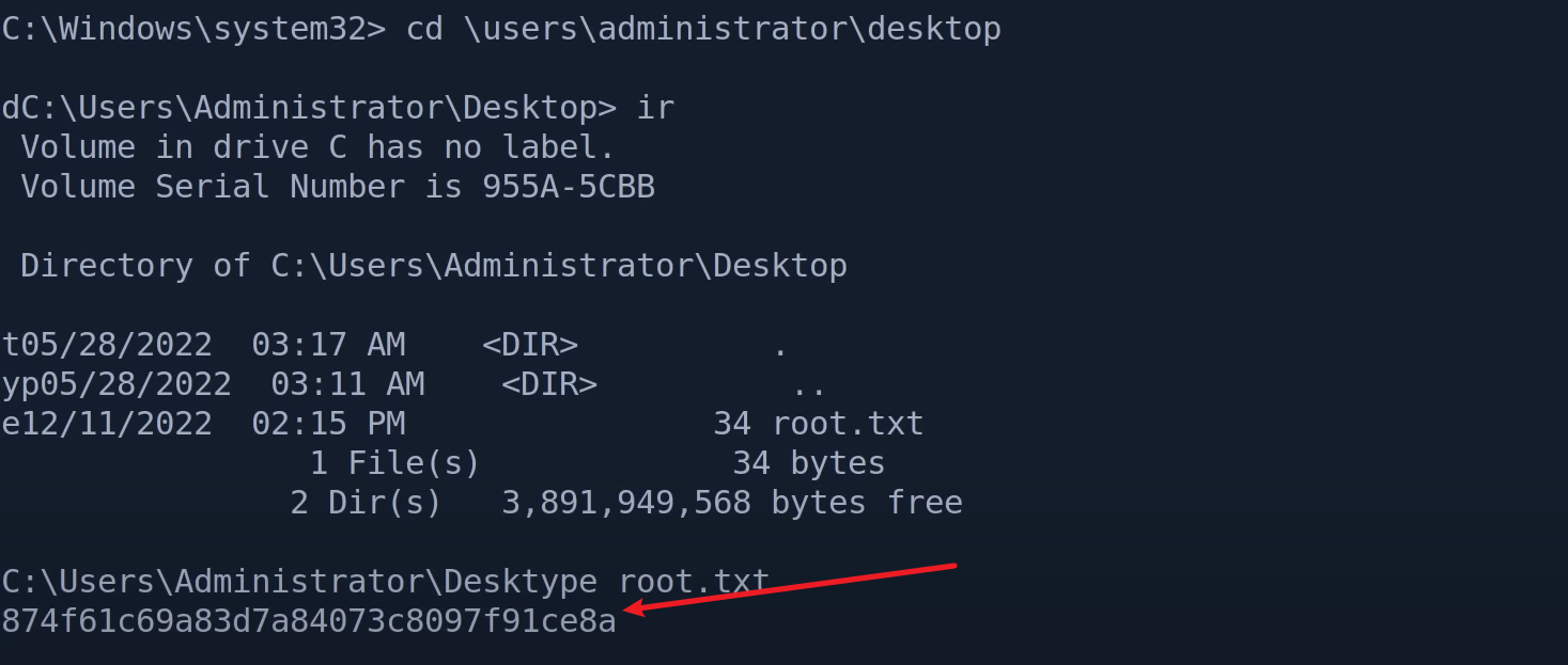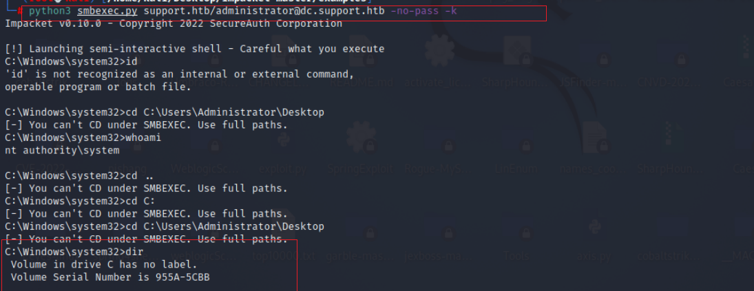 使用impacket工具获取管理员权限,我们成功获取到管理员权限。