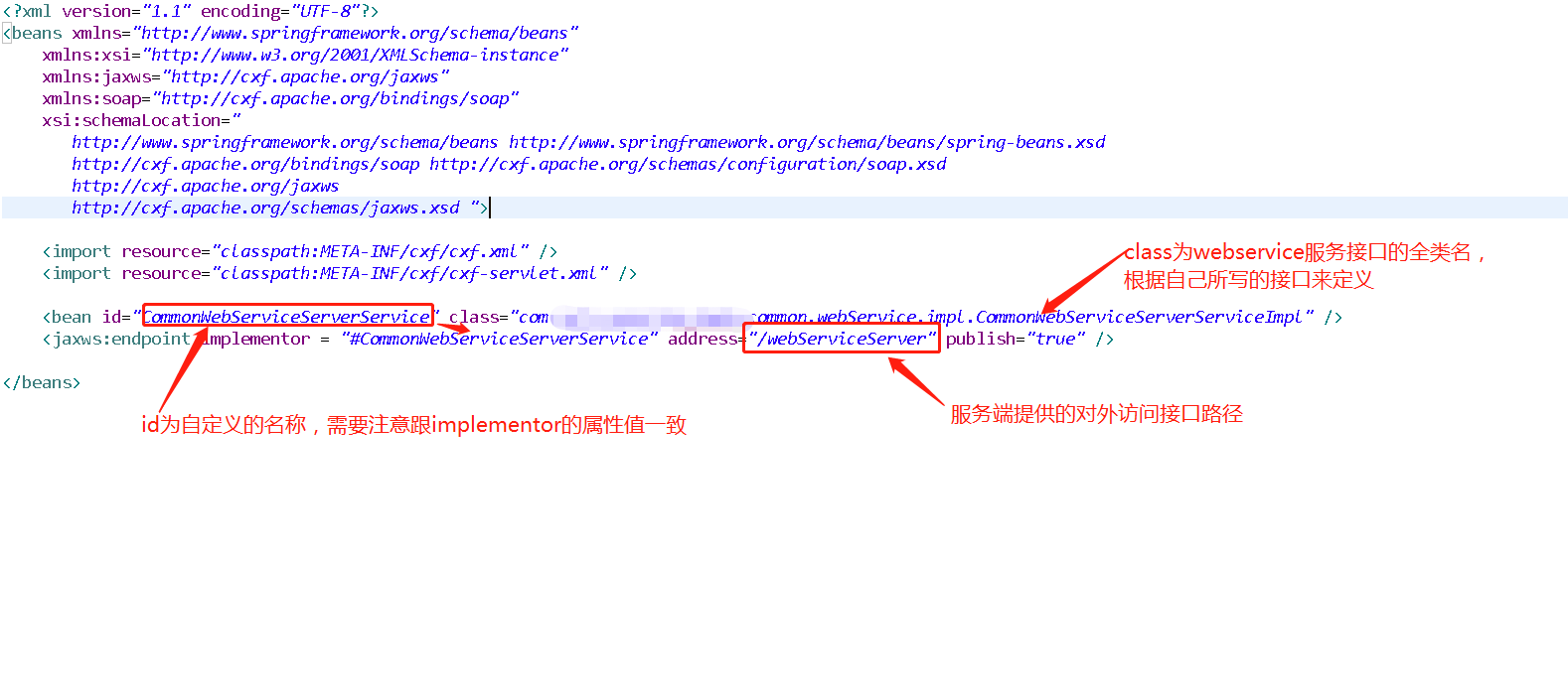 因此我的文件是在src/main/resources/spring/applicationContext-cxf.xml,文件内容如下