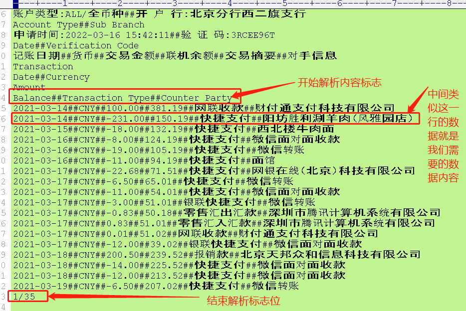 2.项目上的实际案例是用来解析财务报表(资产负债表,利润表,所得税,增值税报表)的。但是那些报表,因为涉及隐私保密问题,所以我就用的个人银行流水给大家做一个详细的讲解过程。