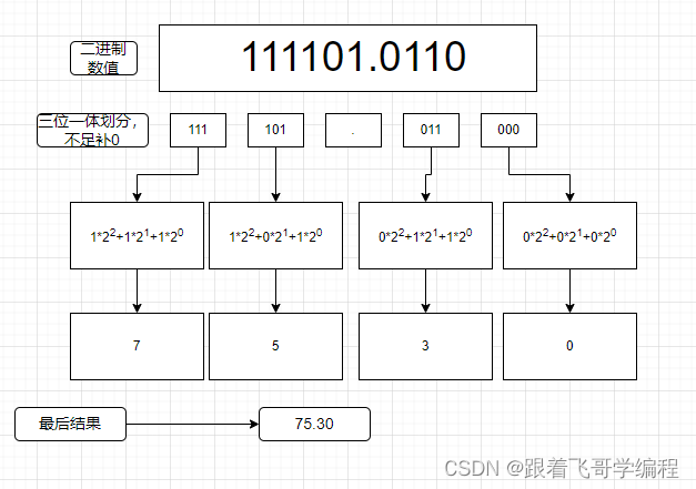 做个小练习 比如:二进制数 111101.0110 转为8 进制为多少呢?
