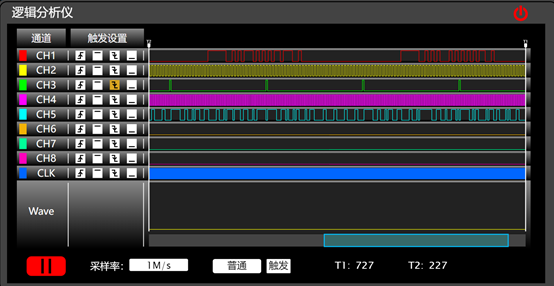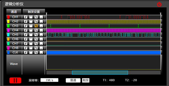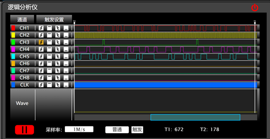 标签的对应依次是:CH1编码前数据、CH2编码前时钟、CH3编码帧脉冲、CH4编码后时钟、CH5编码后数据