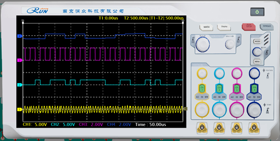 标签的对应依次是:CH1译码输入、CH2时钟、CH3帧脉冲、CH4纠错、CH5未纠错。