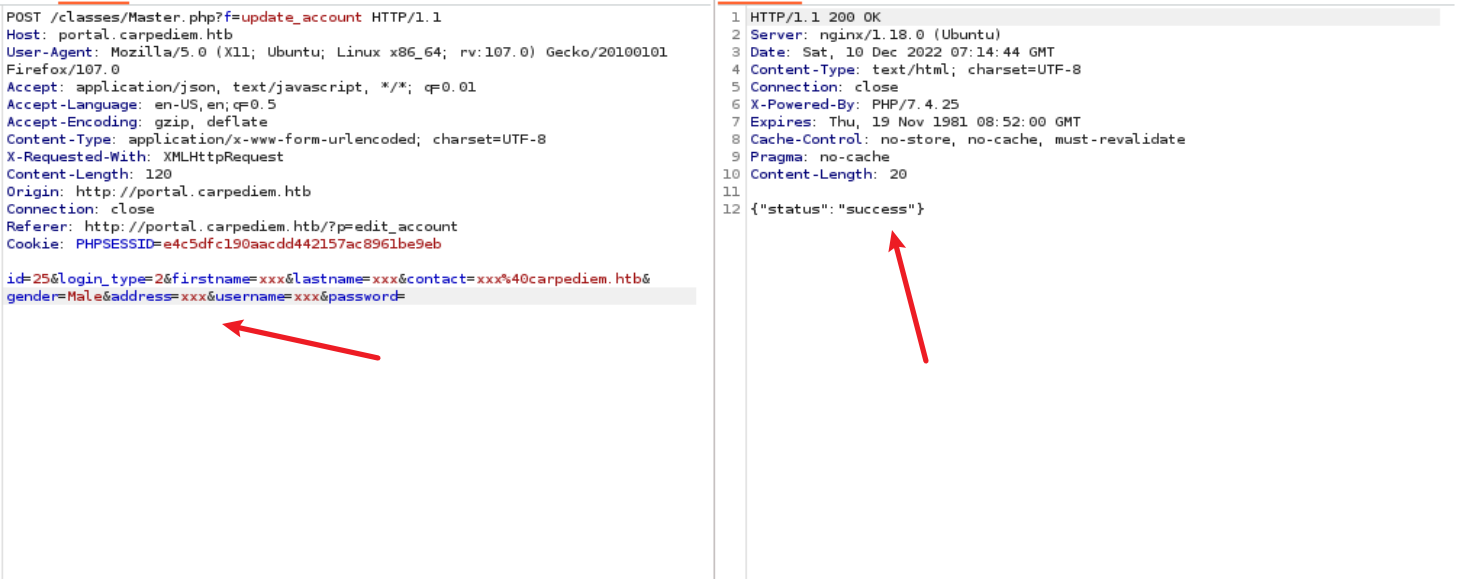 在报错页面中发现,“管理人员会在看到您的确认请求后立即与您联系”这句话。这表明管理层将查看我的提交,这表明可能存在跨站点脚本攻击。看看当我提交请求时会发生什么,它实际上发出了两个 POST 请求/classes/Master.php: