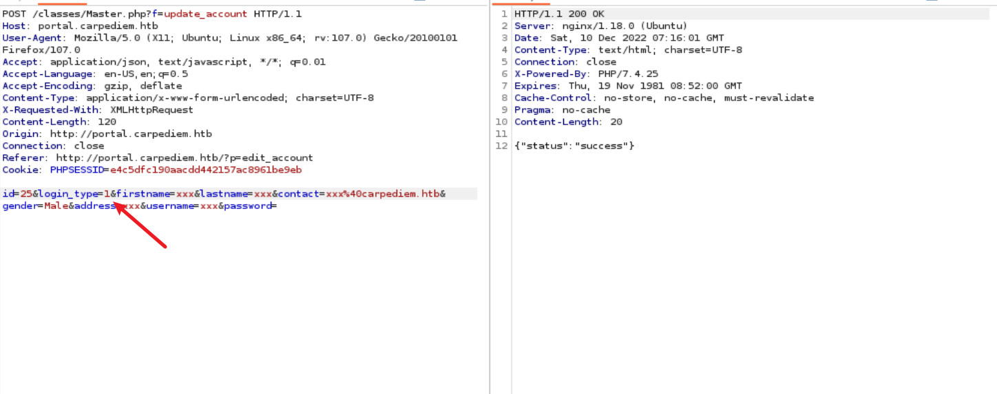 接下来我将尝试将login_type更改为其他值。将其设置为 1 时,它会返回成功: