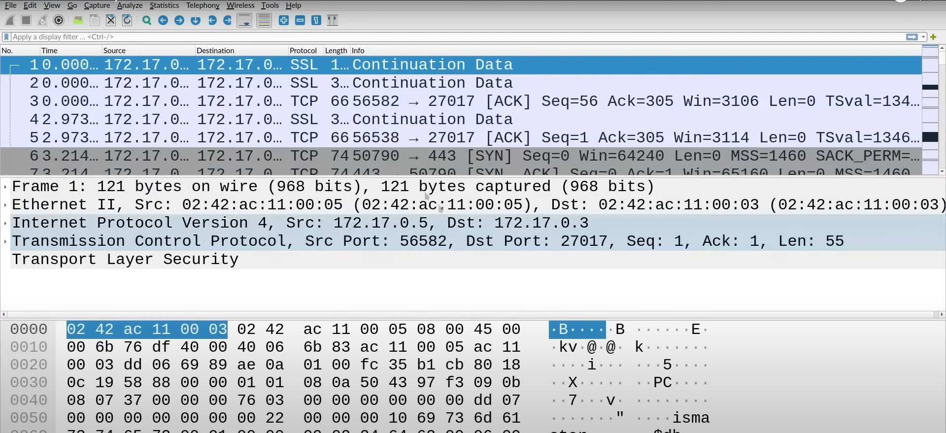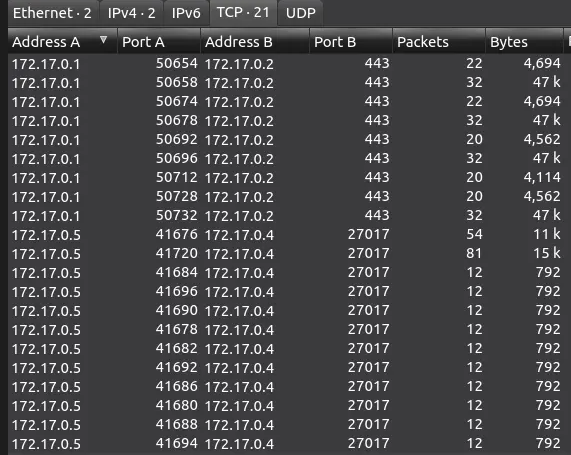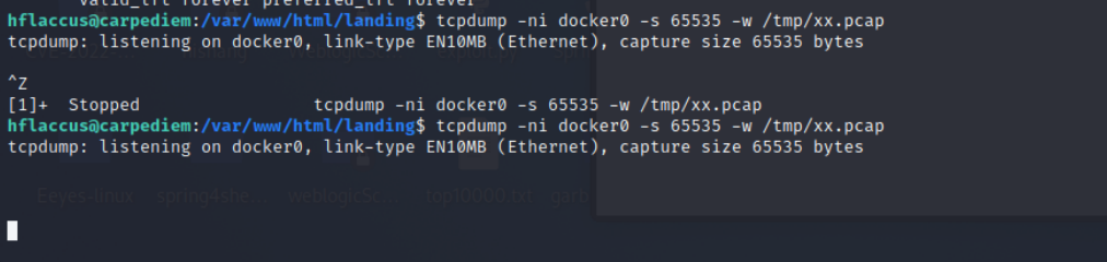 首先,跳过环回。eth0会得到流量,但可能也不是我在这里需要的。docker0将捕获 172.17.0.0/24 网络上的所有流量,使用开始tcpdump收集-i docker0,-s 65535捕获完整帧,and -w