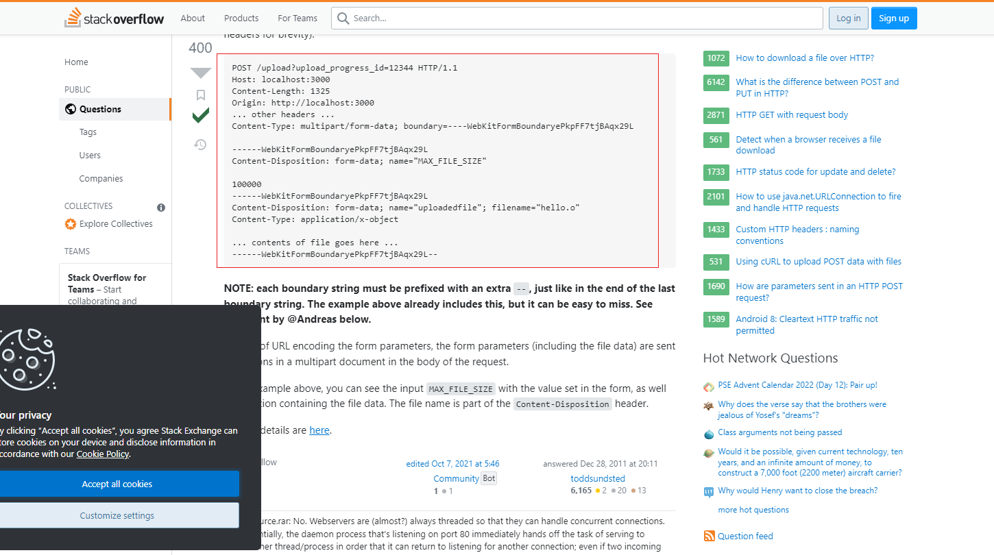 本例中的第一个参数(蓝色标签)只是一个表单值。第一行是元数据,;以 - 分隔,以 开头Content-Disposition: form-data,然后是一系列键值对。MAX_FILE_SIZE这里只有一个,name用于由服务器引用该项目。第二项具有文件上传的典型元数据,包括filename标题Content-Type。
