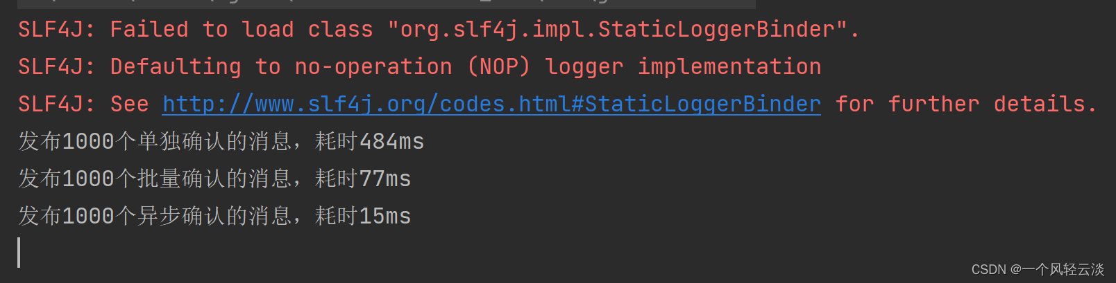 这是一种简单的确认方式,它是一种同步确认发布的方式,也就是发布一个消息之后只有它被确认发布,后续的消息才能继续发布,waitForConfirmsOrDie(long)这个方法只有在消息被确认的时候才返回,如果在指定时间范围内这个消息没有被确认那么它将抛出异常。