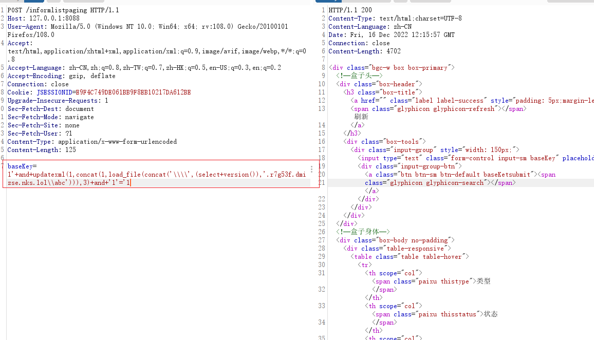 可以看到baseKey是可控的,直接从前端传入,下面给的有url,然后直接访问就行 http://localhost:8089/informlistpaging?baseKey=1
