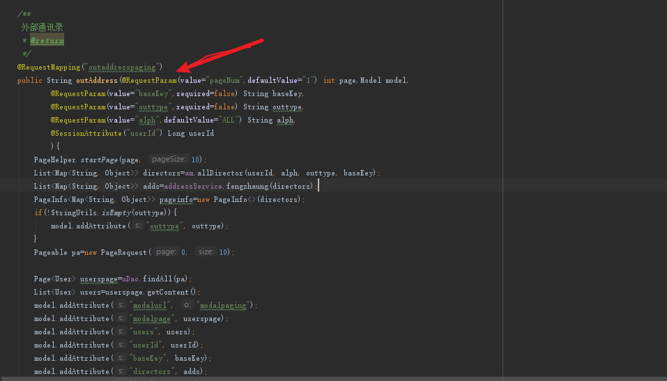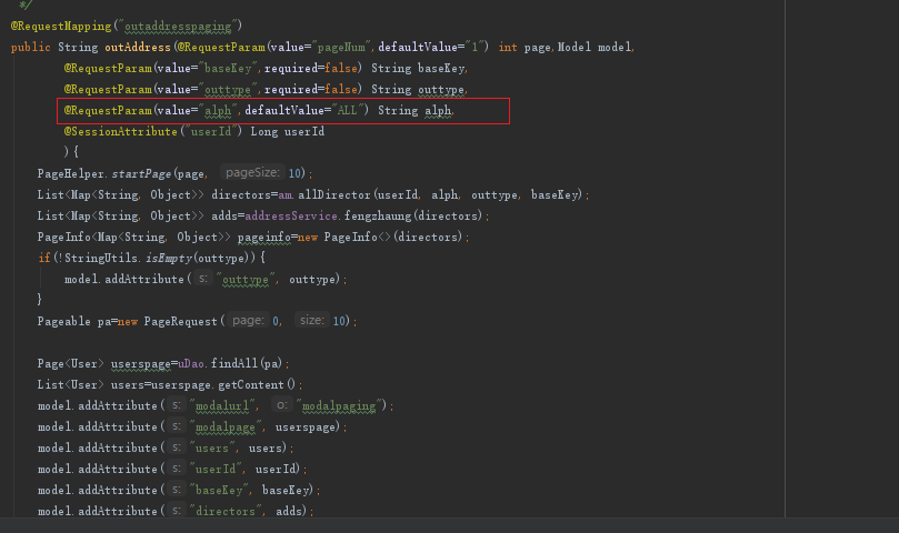 进入到AddrController中outAddress方法,可以确定在Mapper中pinyin这个参数是可以被利用的。
