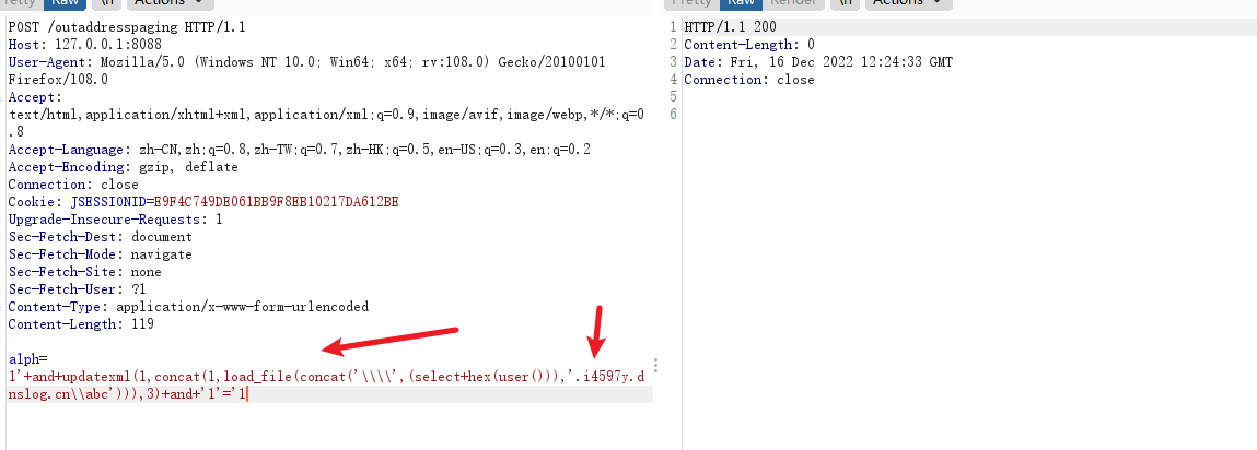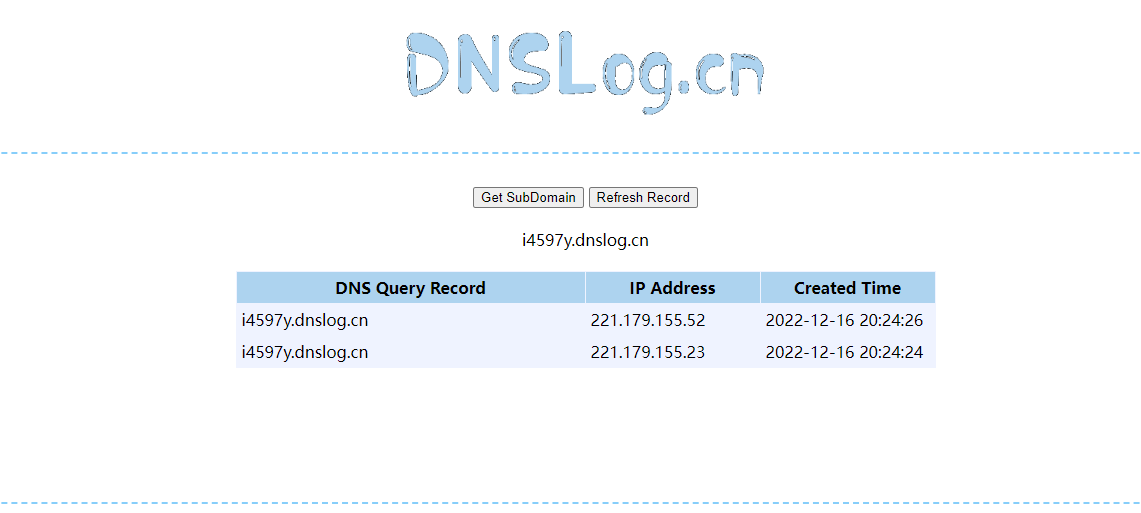 因为该接口不会将报错回显到前端,所以这里使用dnslog进行测试。发送上面请求后在dnslog服务器可以看到