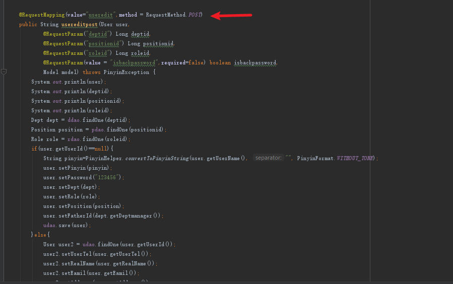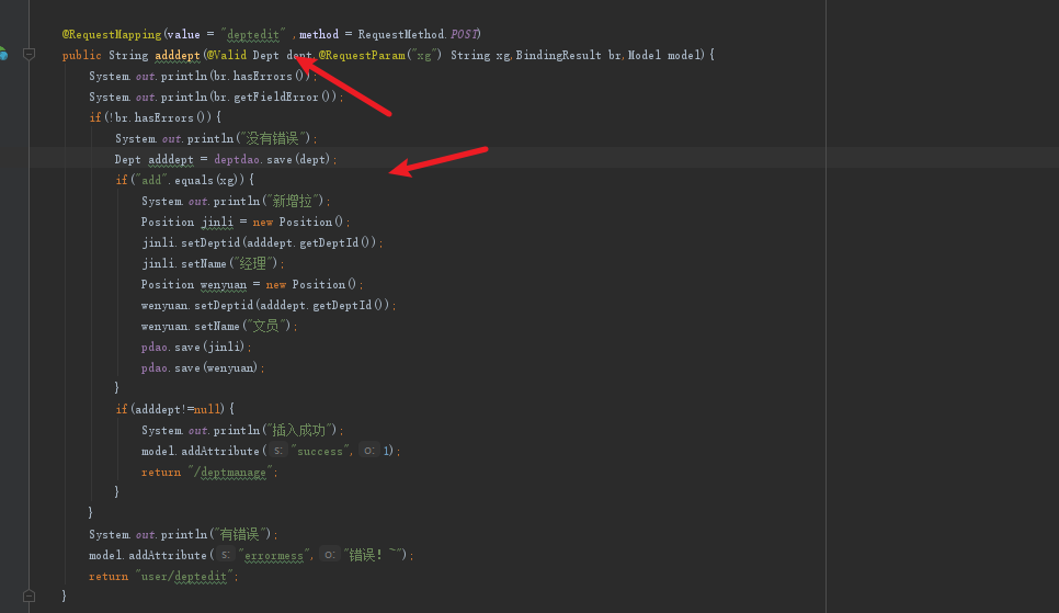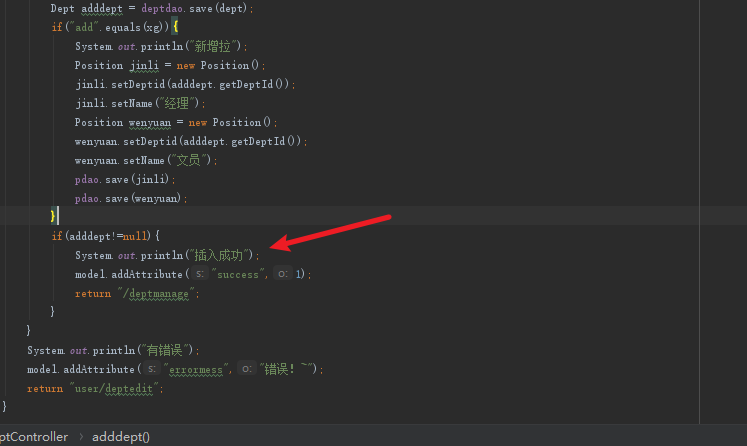 可以看到没有进行任何过滤直接调用deptdao.save将数据存入数据库。