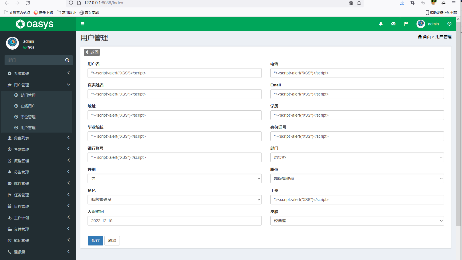 本系统也存在多处CSRF漏洞.现在挑出一处来进行复现。