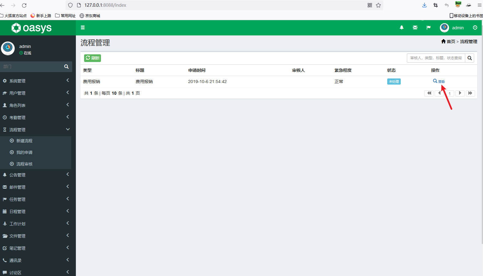 使用另外一个低权限账号登录系统,首先查看流程列表: