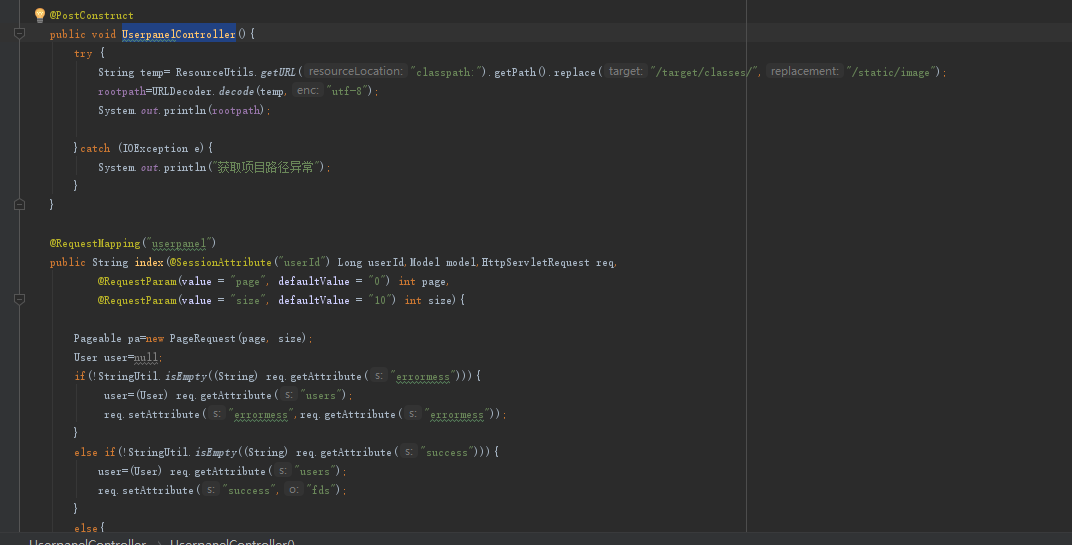 - @SessionAttribute("userId") Long userId:这是一个保存用户 ID 的会话属性。它带有 注释@SessionAttribute,这意味着它将由 Spring MVC 框架从用户的会话中自动检索。