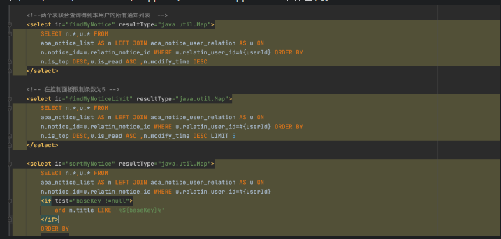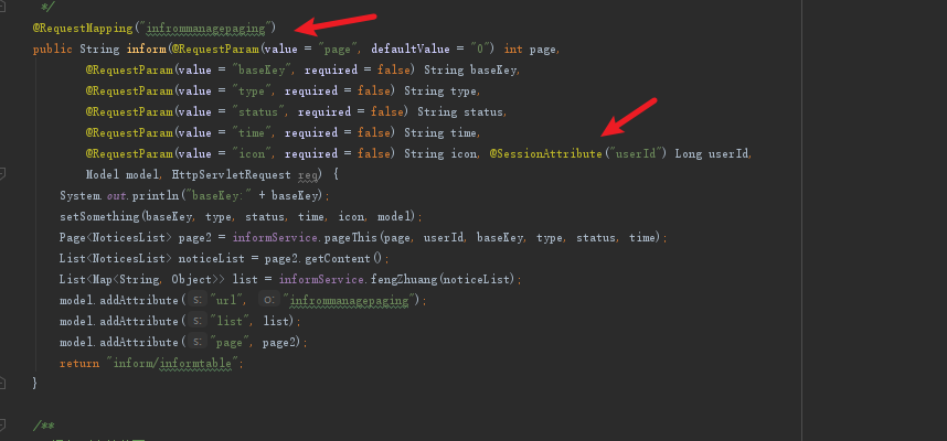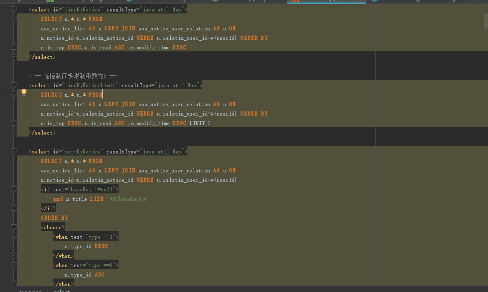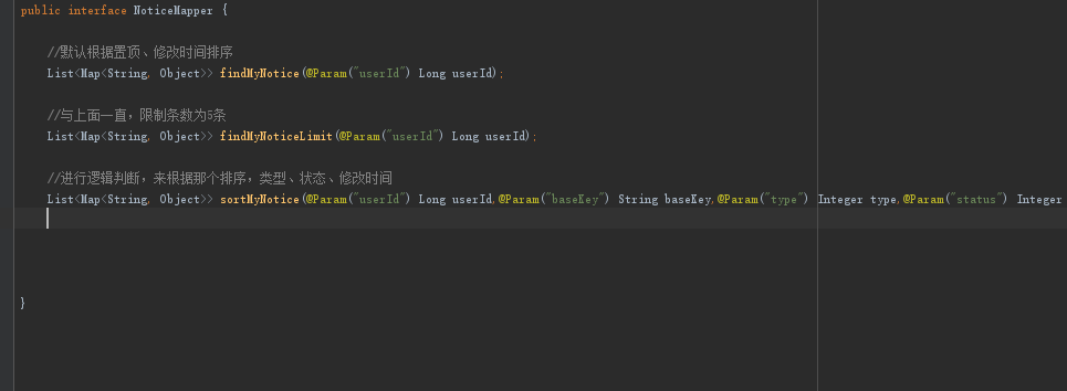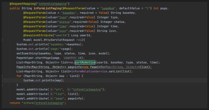 接下来就去看那个地方对该参数进行了调用,往上跟踪cn.gson.oasys.mappers.NoticeMapper接口——>sortMyNotice追踪到/src/main/java/cn/gson/oasys/controller/inform/InformController.java的如下代码中