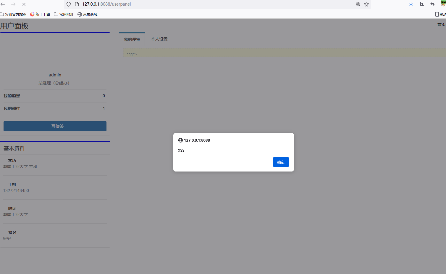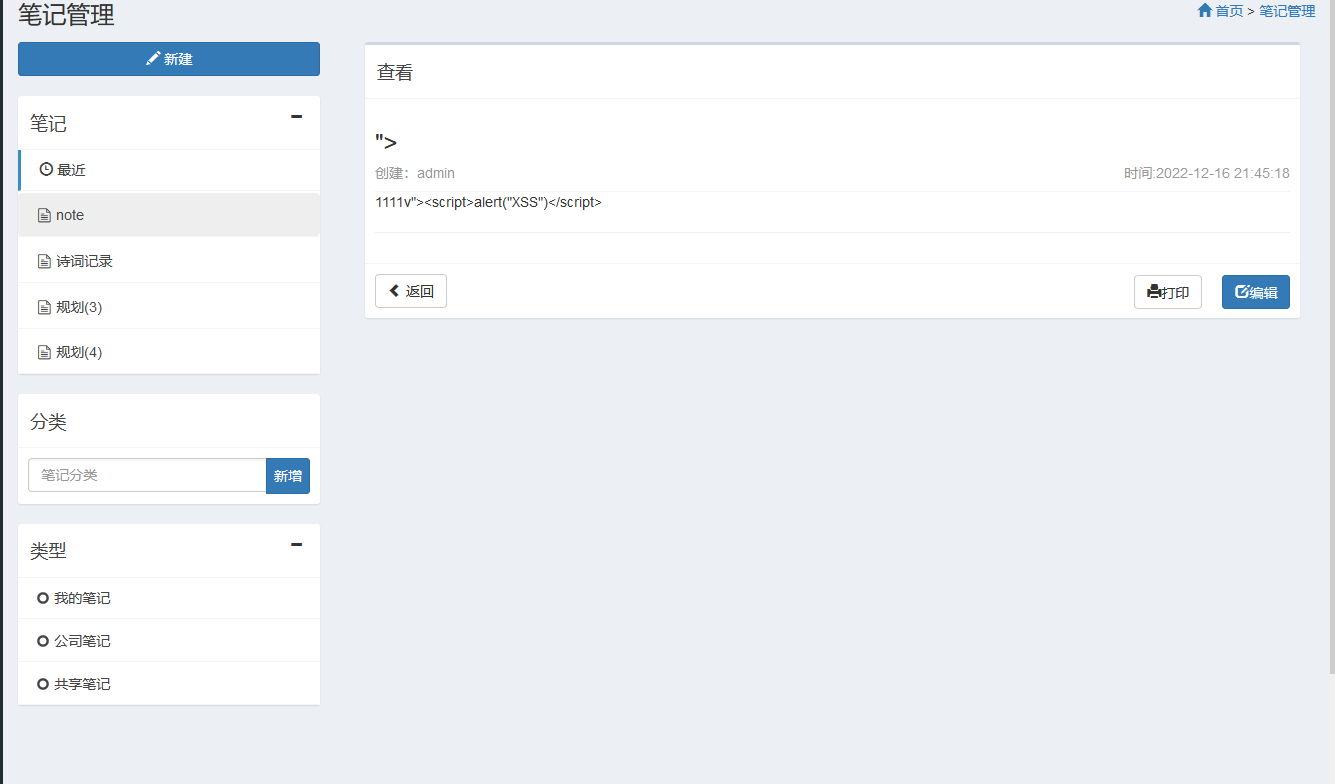在测试功能点时发现在写笔记时将标题名可直接写为XSS恶意代码