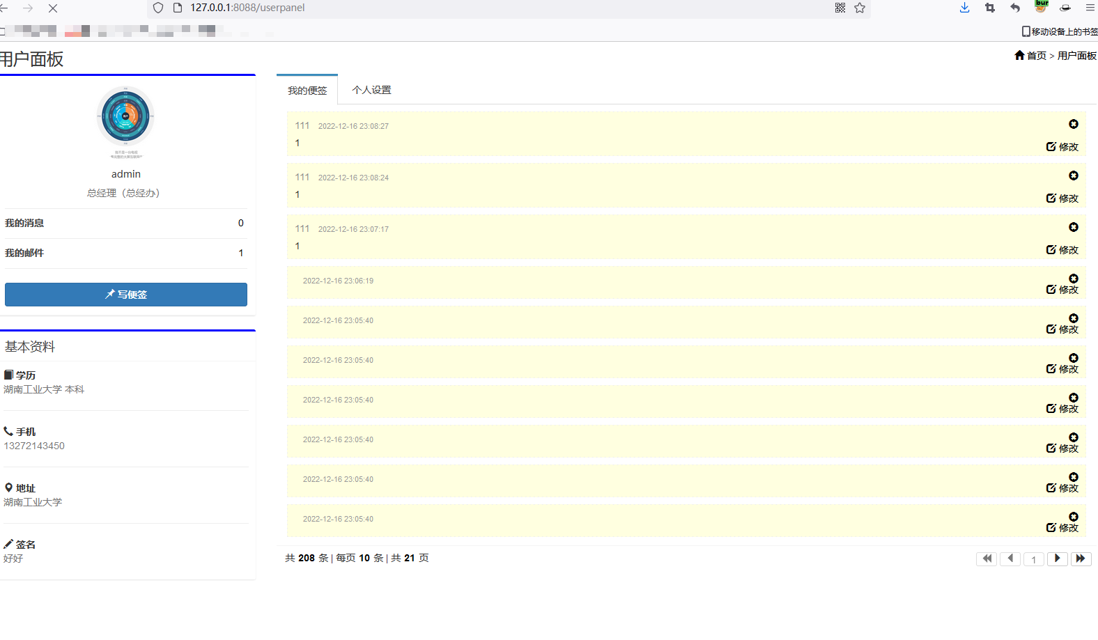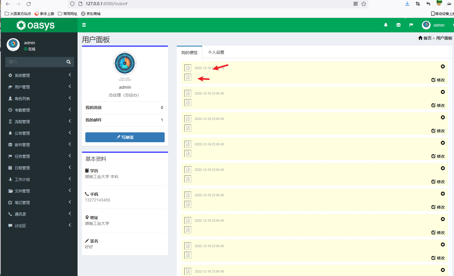 ①、访问用户面板功能,点击写便签,输入任意内容。