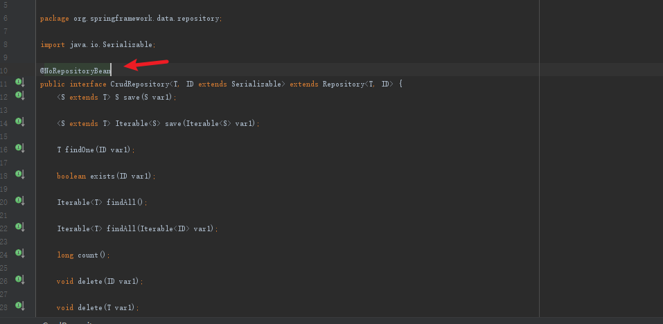 然后再使用daydao.delete(rc)进行删除,此时我们追踪一下这个方法,发现这个delete方法也就是Spring Data CrudRepository中的delete(删除)方法,如下图所示:
