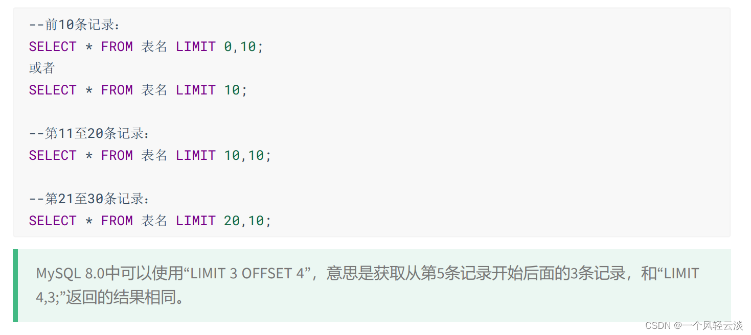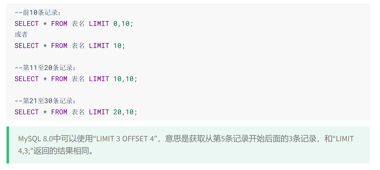 注意:LIMIT 子句必须放在整个SELECT语句的最后!