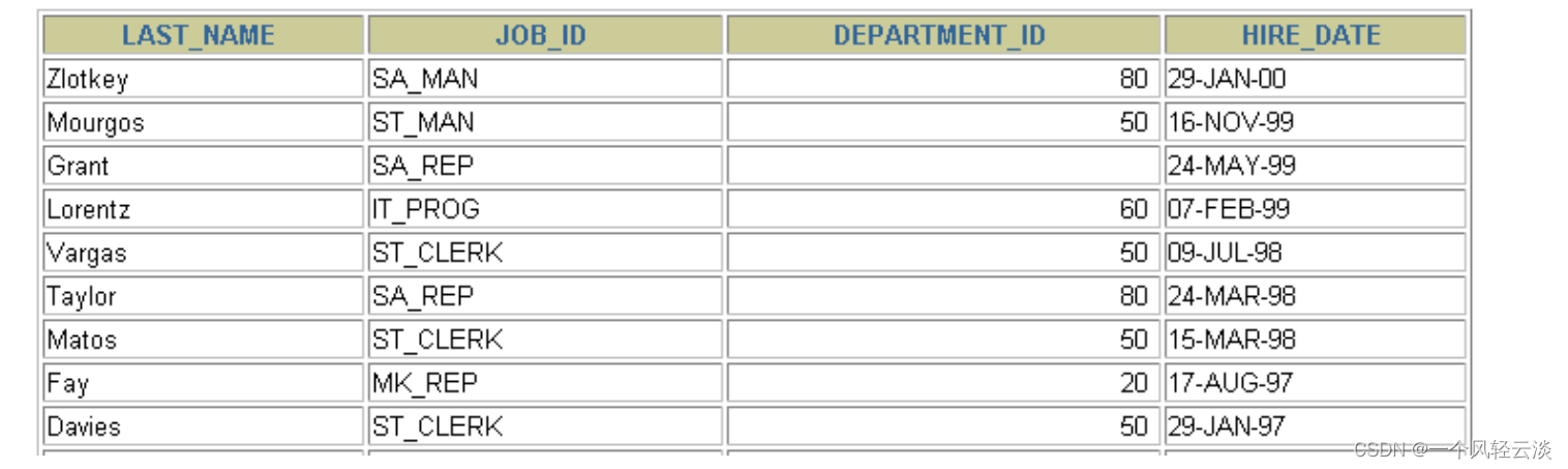 【摘要】 排序规则 使用 ORDER BY 子句排序 ASC(ascend): 升序(默认)DESC(descend):降序ORDER BY 子句在SELECT语句的结尾。单列排序SELECT last_name, job_id, department_id, hire_dateFROM employeesORDER BY hire_date ;编辑SELECT last_na...