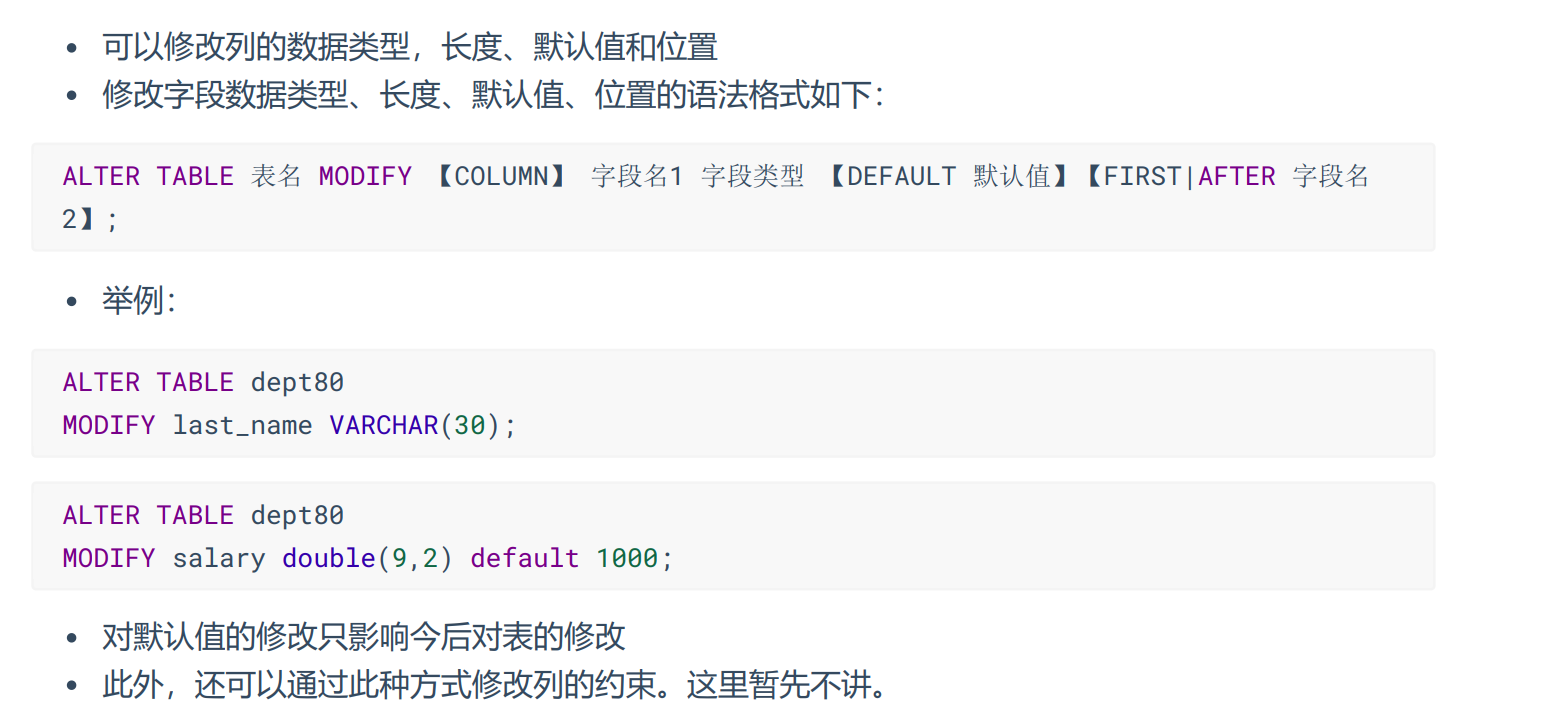 同样的,在使用 ALTER TABLE 进行表的基本修改操作时,在执行操作过程之前,也应该确保对数据进