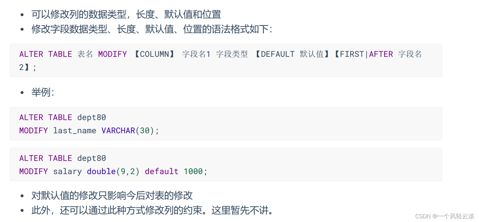 修改表指的是修改数据库中已经存在的数据表的结构。