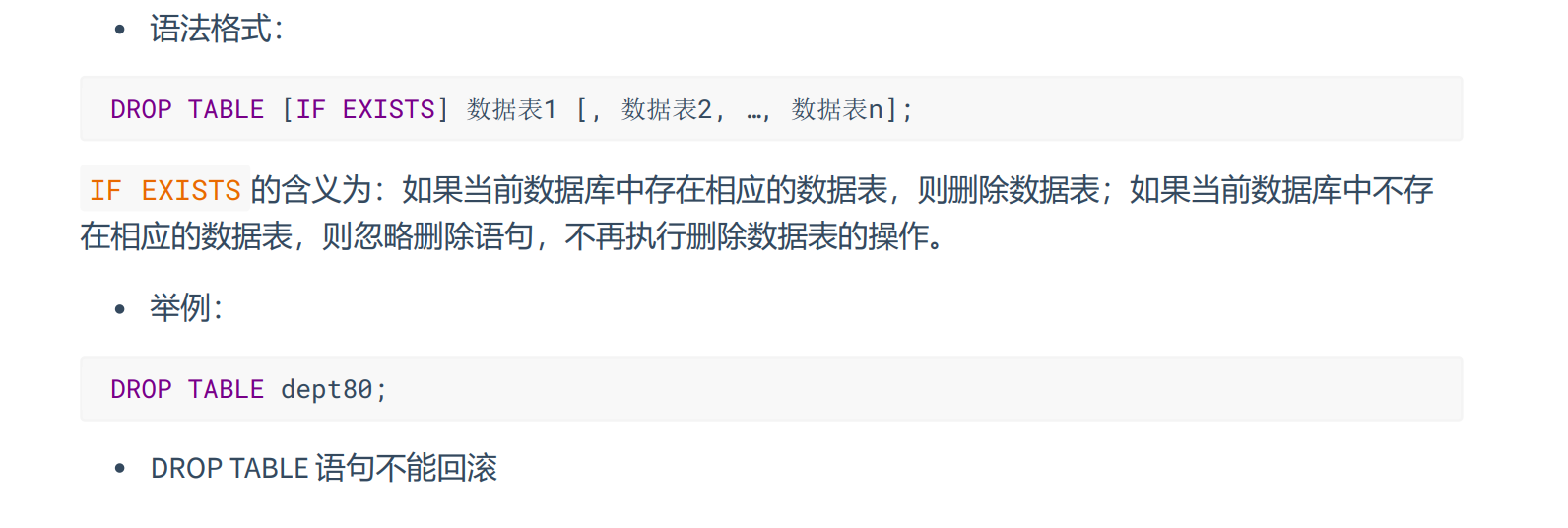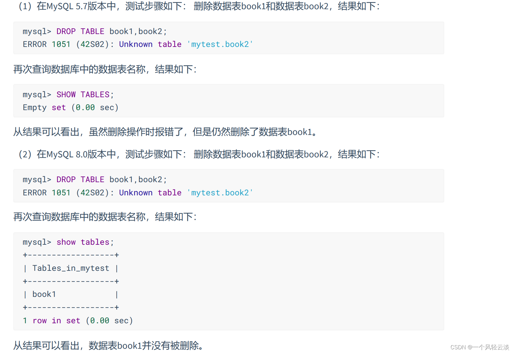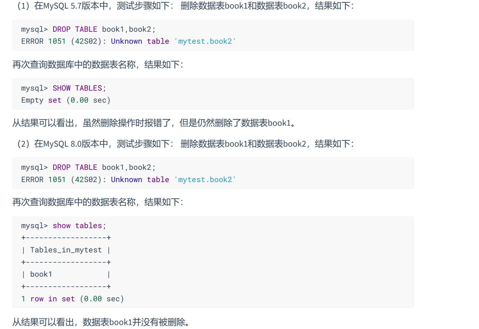 表删除 操作将把表的定义和表中的数据一起删除,并且MySQL在执行删除操作时,不会有任何的确认信