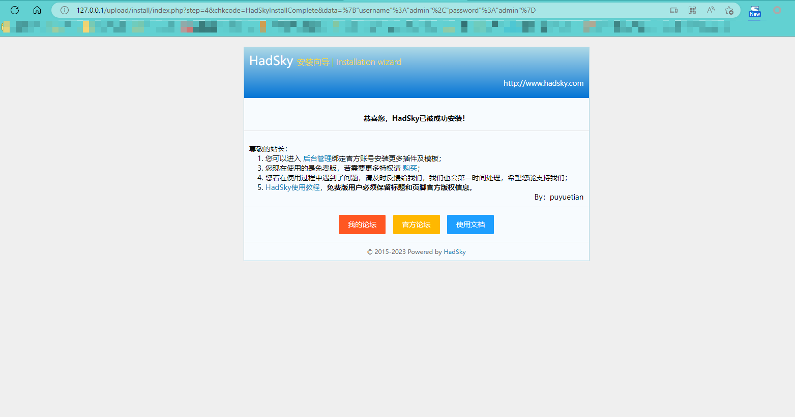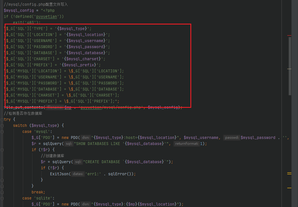 puyuetian.php ,而在该文件中包含了config.php文件,那么也就是说只要我们成功安装系统,再访问