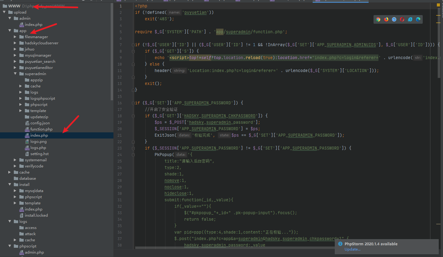 定位到如下代码处 app\superadmin\phpscript\app.php