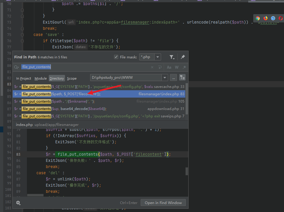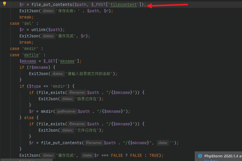 在全局搜索 file_put_contents( 时,发现这里写入的内容直接可通过POST传参控制,那么这里的重