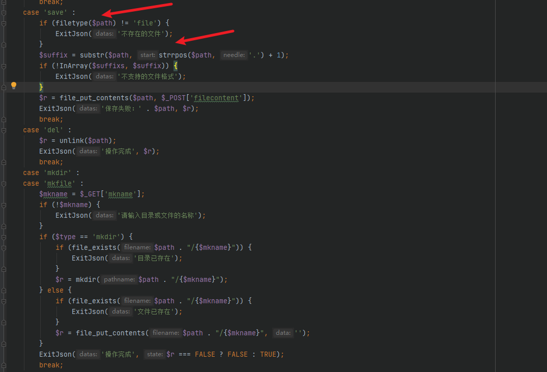 所以这里这需要传入type=save,path是一个存在的文件则可以覆盖该文件将任意内容写入,这里判断