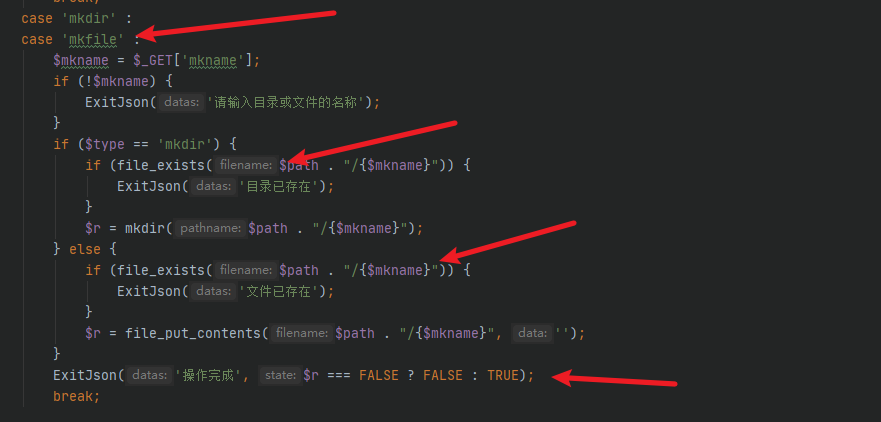 通过type=mkfile,并且传入 mkname 参数即可创建文件,这样我们就可以通过创建的文件进行文件内容