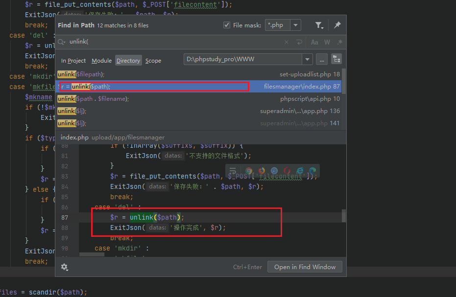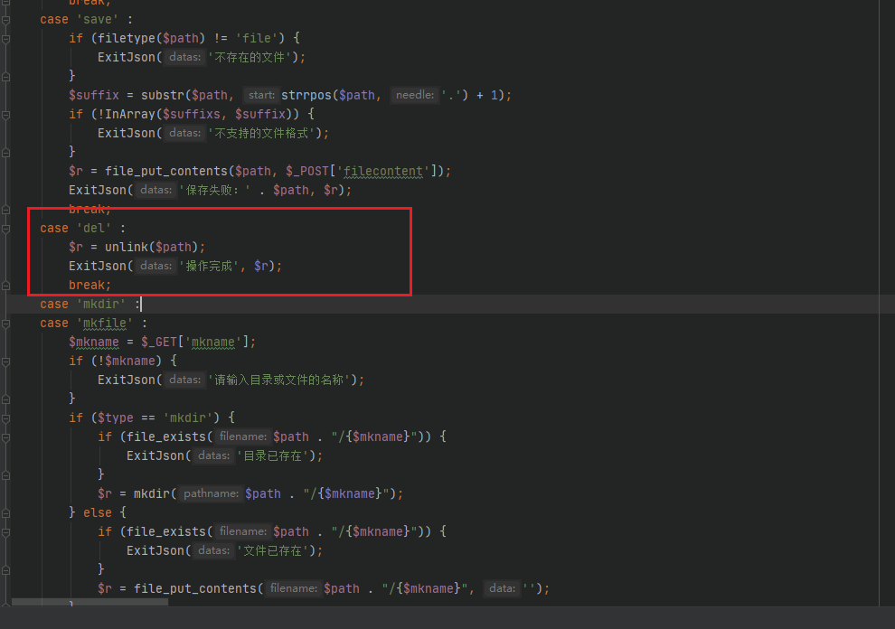 在定位上诉漏洞点时,不知道大家是否注意到 unlink() 函数,经过前面的分析这里的$path我们确定是