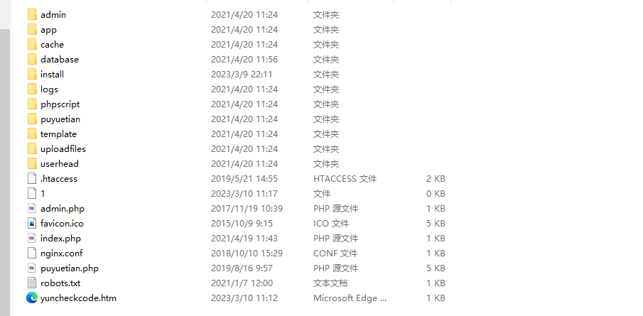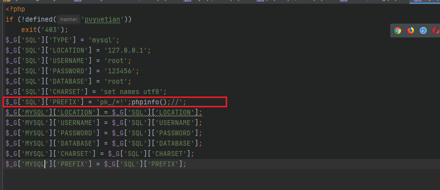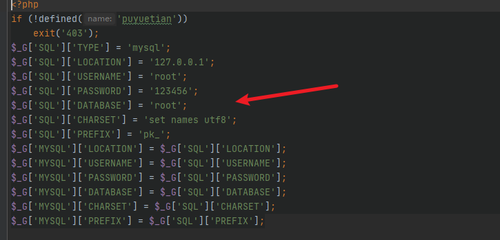 上面config.php文件中我们可知,必须定义了puyuetian常量才可以访问该文件,那么很明显该文件不