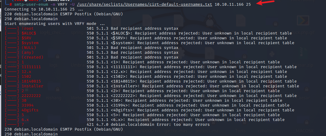 接着使用nmap对SMTP 协议去爆破一些用户名。
