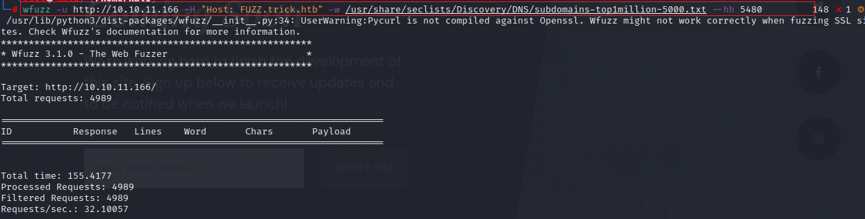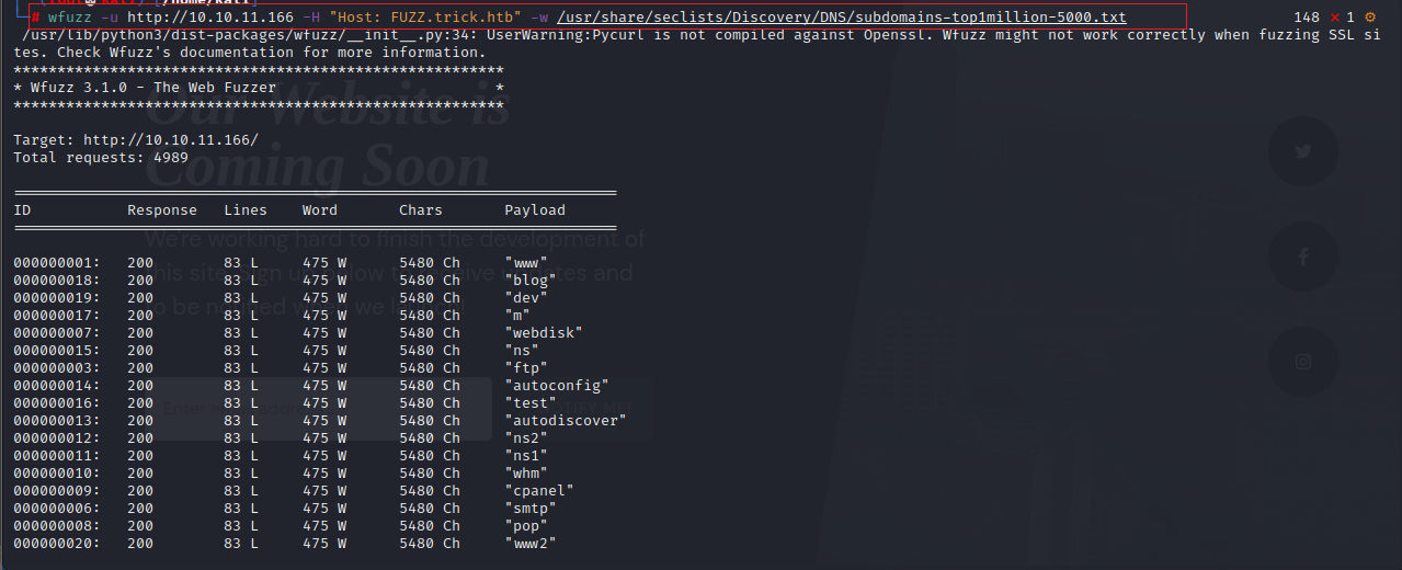接着使用wfuzz枚举子域名。成功枚举出新的子域名。
