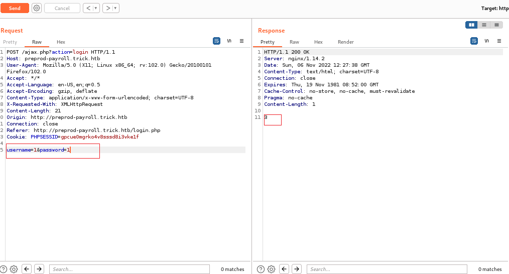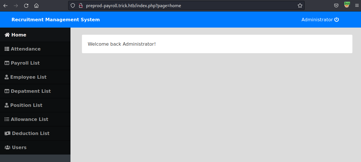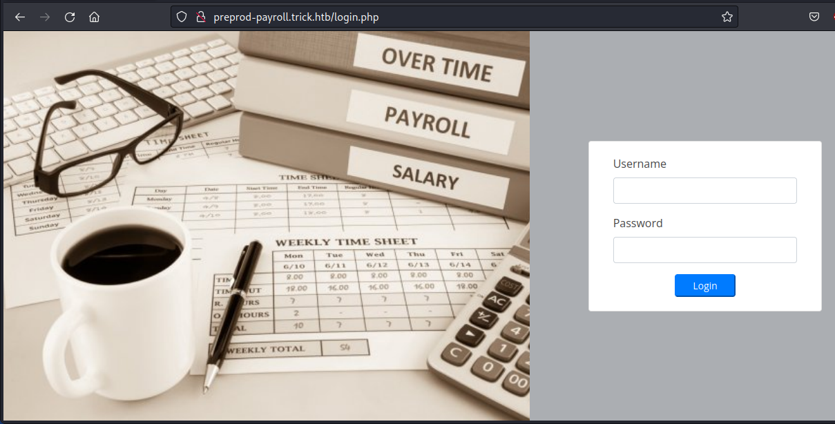 当我搜索http://preprod-payroll.trick.htb时,它会自动将我重定向到登录页面。