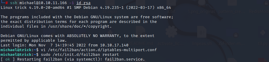 文章链接:https://grumpygeekwrites.wordpress.com/2021/01/29/privilege-escalation-via-fail2ban/